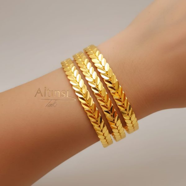 - 22 AYAR ALTIN KAPLAMA DESENLİ ZİGZAG AJDA BİLEZİK