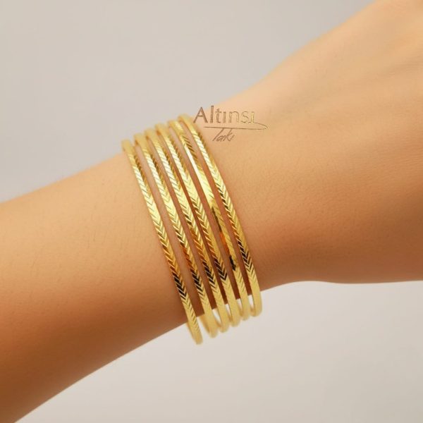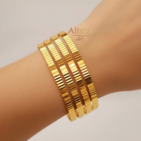 - 22 AYAR ALTIN KAPLAMA ÇİZGİLİ AJDA BİLEZİK