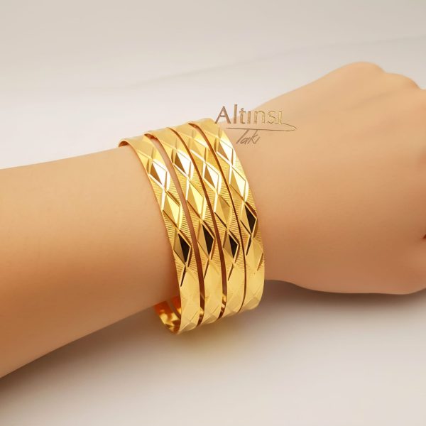 Altın Kaplama Çizgili Ajda Bilezik 0048