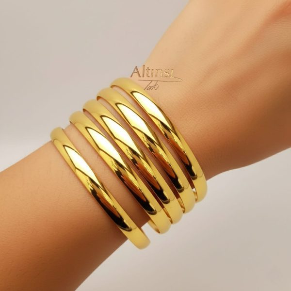 Altın Kaplama 5mm Bombeli Düz Bilezik 0038