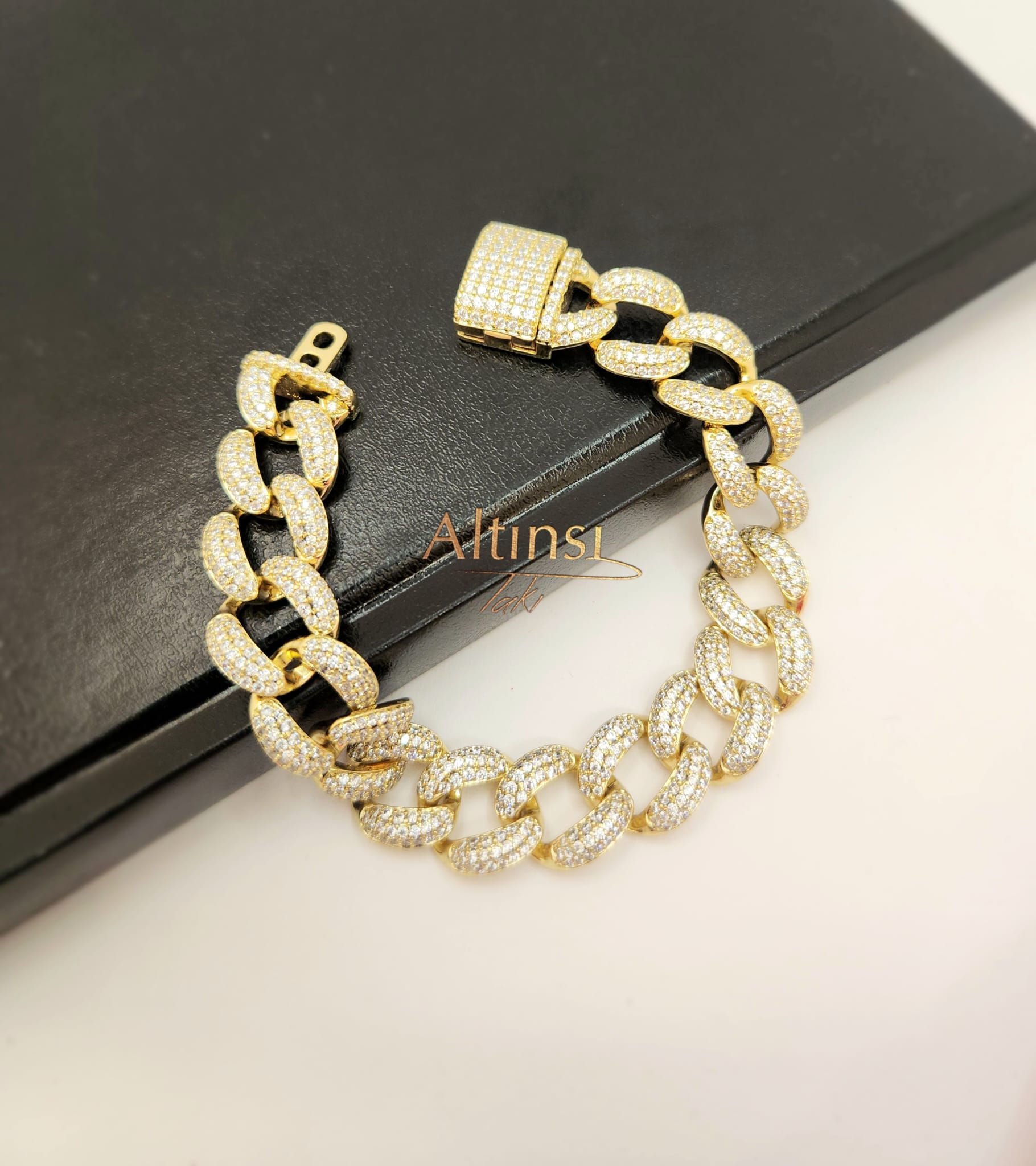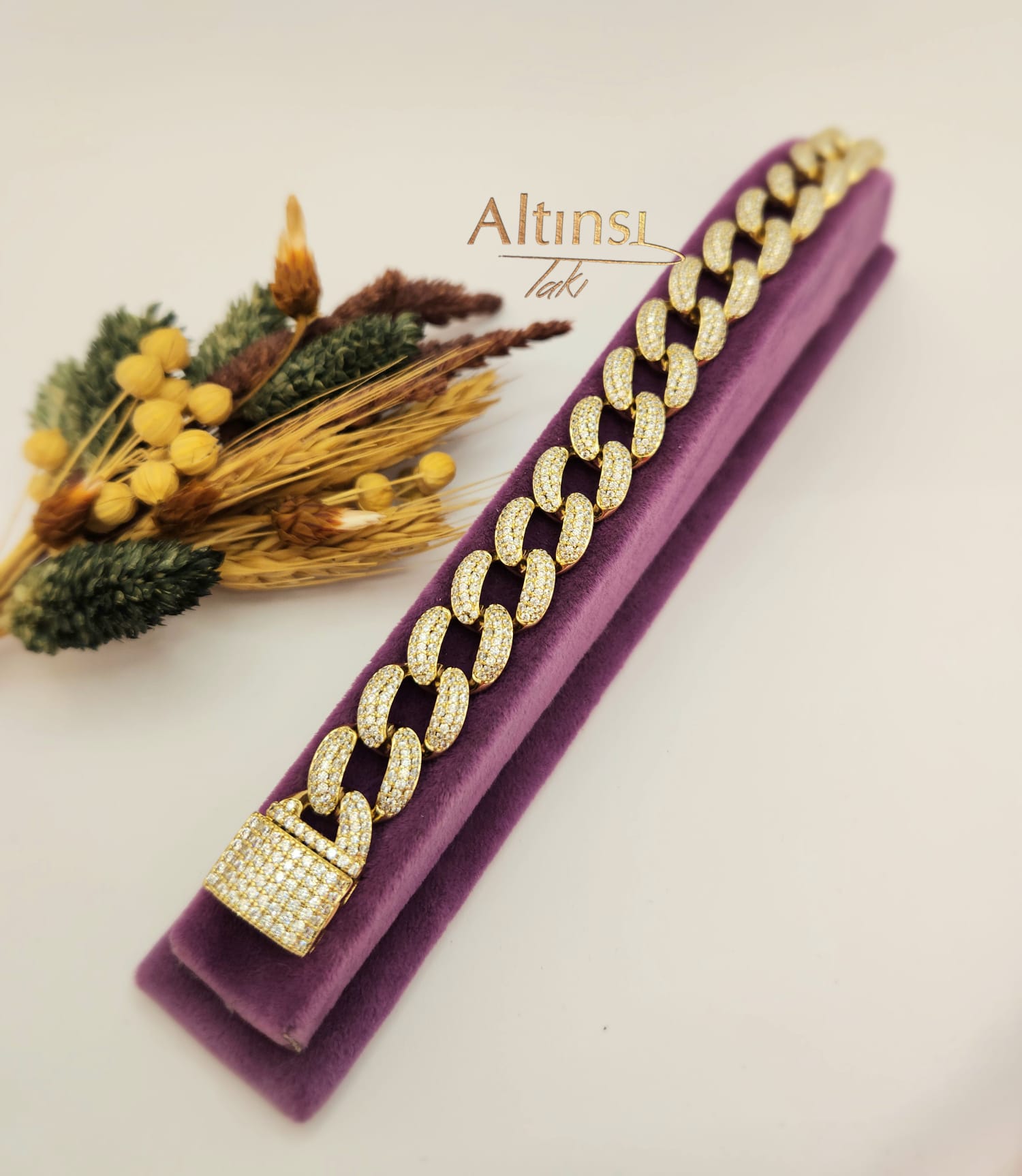 - 14 AYAR ALTIN KAPLAMA TAŞLI KELEPÇE BİLEZİK